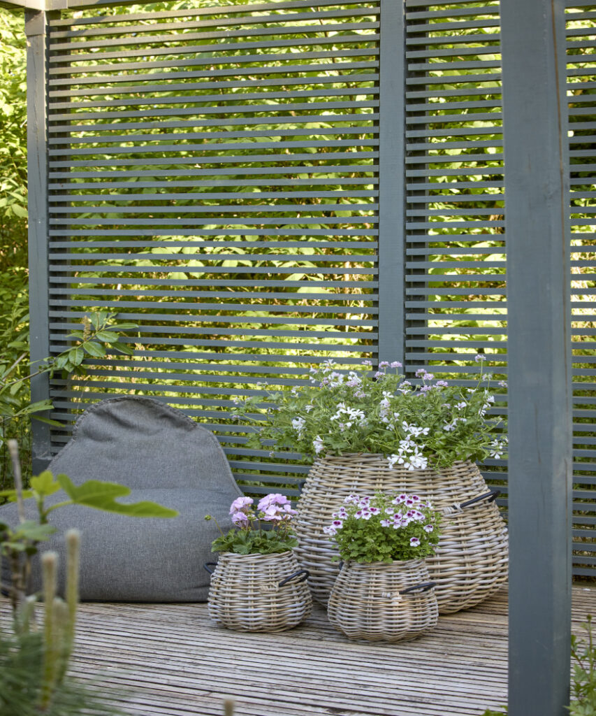 Placed on the patio table or grouped together on the floor, they bring nature right into this outdoor living space. The result is a contemporary yet nature-inspired garden or patio look