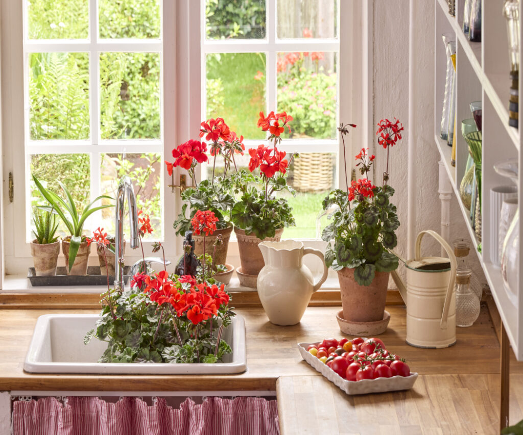 Geraniums bring a touch of the countryside into your home. On windowsills or in the kitchen or living area, they provide natural touches in classic pots, woven baskets or rustic containers.
