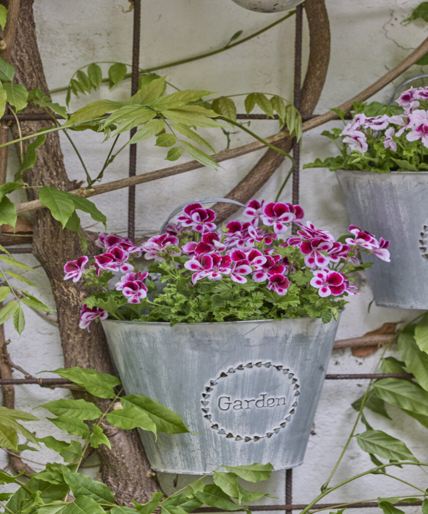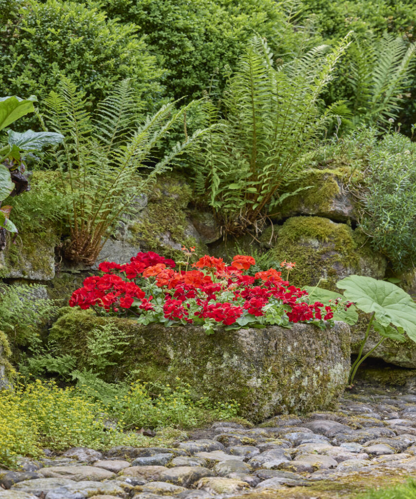 Whether displayed in shabby-chic wire baskets, vintage-style zinc buckets, ceramic pots with a handmade feel, or used to add a splash of colour to a disused stone trough, geraniums bring a unique charm to cottage gardens when combined with vintage-style containers.