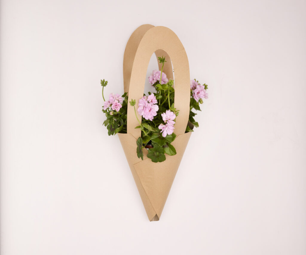 Original packaging makes a gift look truly beautiful. This homemade paper bag not only holds the geranium securely, but also gives it a lovely presentation.