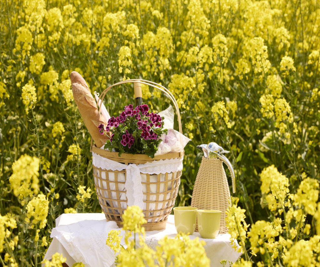 A picnic against the backdrop of a blooming rapeseed field offers the ultimate authentic nature experience with all the charm of summer.