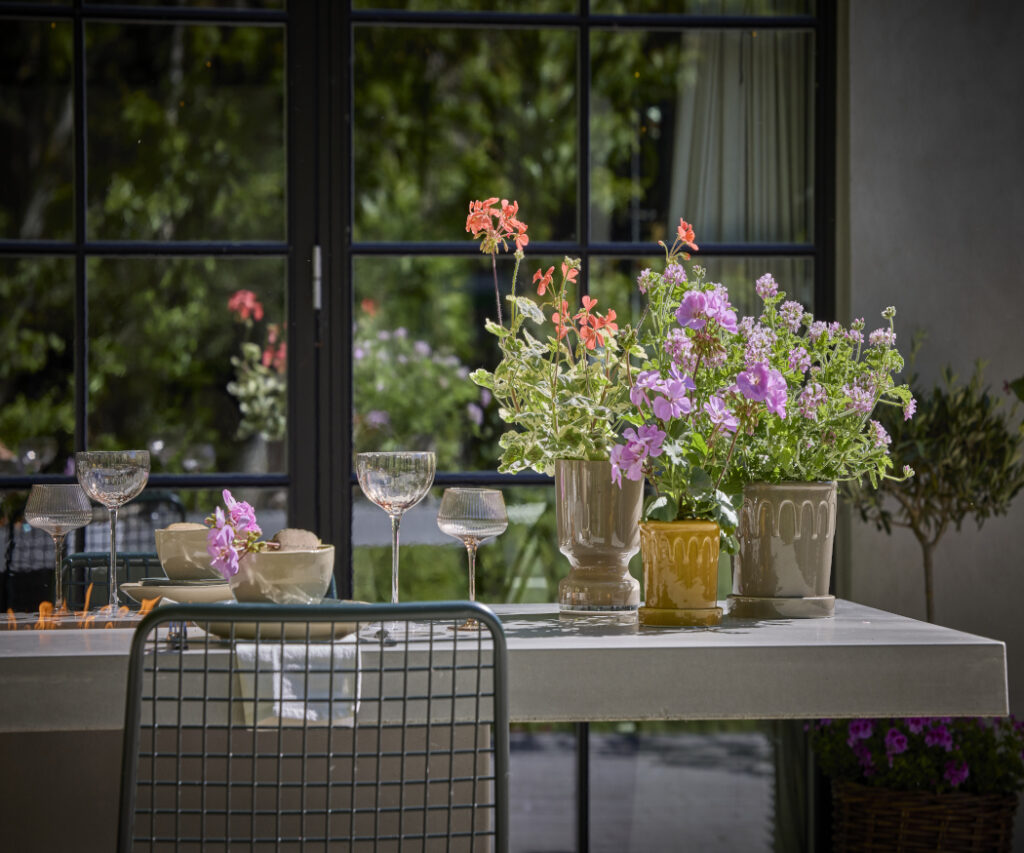 Whether it’s a picnic in the countryside, a celebration dinner in the garden, or an evening meal on the terrace, during the warmer months, life moves outdoors. And it’s extra special when nature itself takes a seat at the table. Geraniums are perfect for this, with their variety of colours and shapes adding seasonal touches and transforming any table into an enchanting summer setting. The experts at Pelargonium for Europe (PfE) share the endless possibilities for creating beautiful floral table arrangements with geraniums.